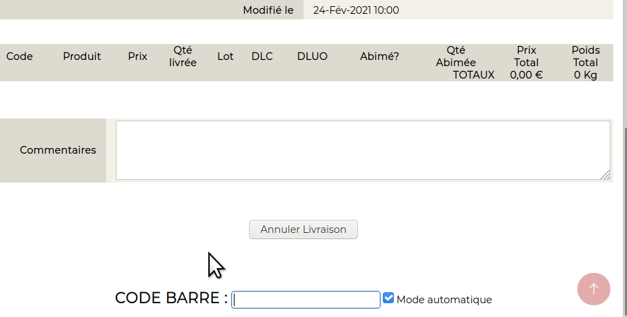 Ce mode permet d’accélérer la saisie de la livraison en maximisant l’utilisation du clavier (entrée pour valider, tabulation pour passer au champ suivant)