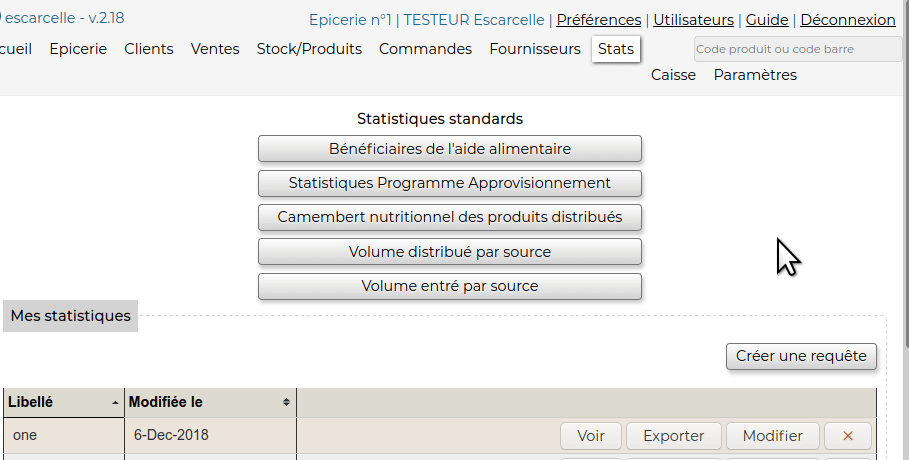 Le type de vente, accessible dans la table “Ticket”, permet de distinguer les distributions de colis (type=colis), des ventes via la caisse (type=caisse)