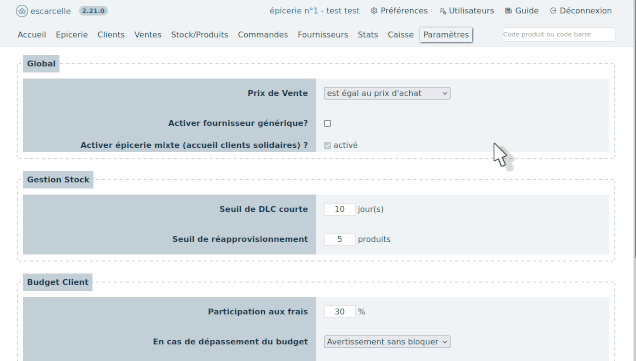 L’activation de cette nouvelle fonctionnalité se fait dans l’onglet “Paramètres” accessible au profil “Responsable” de l’épicerie.