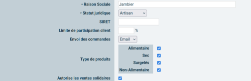 Dans la fiche fournisseur, cochez la case “Autorise les ventes solidaires”.