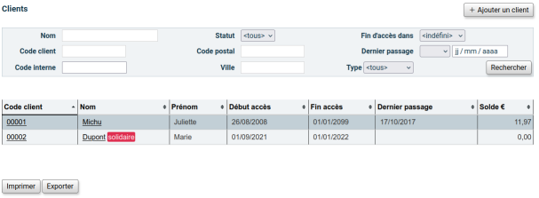 Les clients solidaires apparaîssent dans la recherche avec un petit drapeau rouge indiquant “solidaire”.